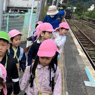 秋の遠足に5歳児だけで行ってきました。今年はバスではなく、電車で出かけました。