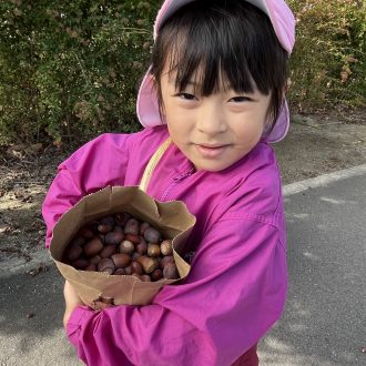 たくさんどんぐりを拾って帰ってきたいるかチームさんたち。他のクラスも使えるようにとたくさん拾ってくれたそうです。リュックもずーんと重たかったようですが、駅までの道のりも歩くことができました。家にもお土産どんぐりをどっさり持って帰り、大満足の秋の遠足でした。