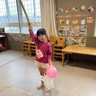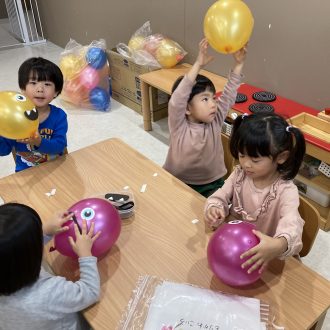ハロウィンについての話があった後は、コーナーを周り、ゲームをしたり、お菓子のつかみ取りや風船おばけを作ったりしました。