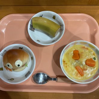給食は🎃おばけロールパンにハロウィンシチュー♪