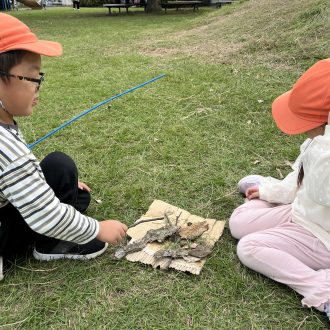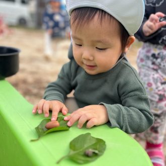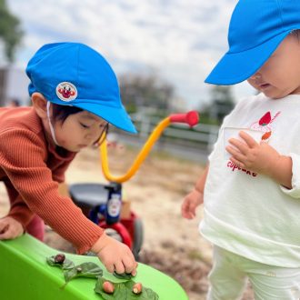 子どもたちの遊びの中にも、どんぐり・赤や茶色の葉っぱが仲間入りです。