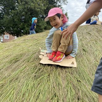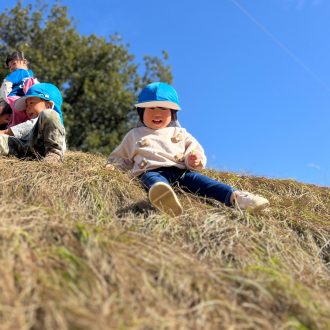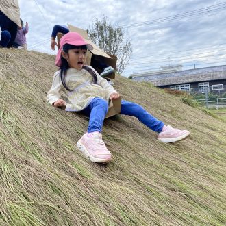 でもこれがまた、いい具合なようで・・・。色々な滑り方をして遊んでいます。それを見ていた1歳児。恐る恐るチャレンジしていました。